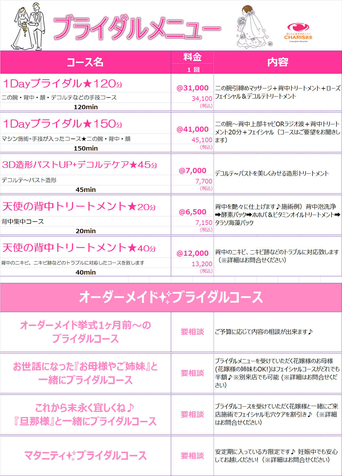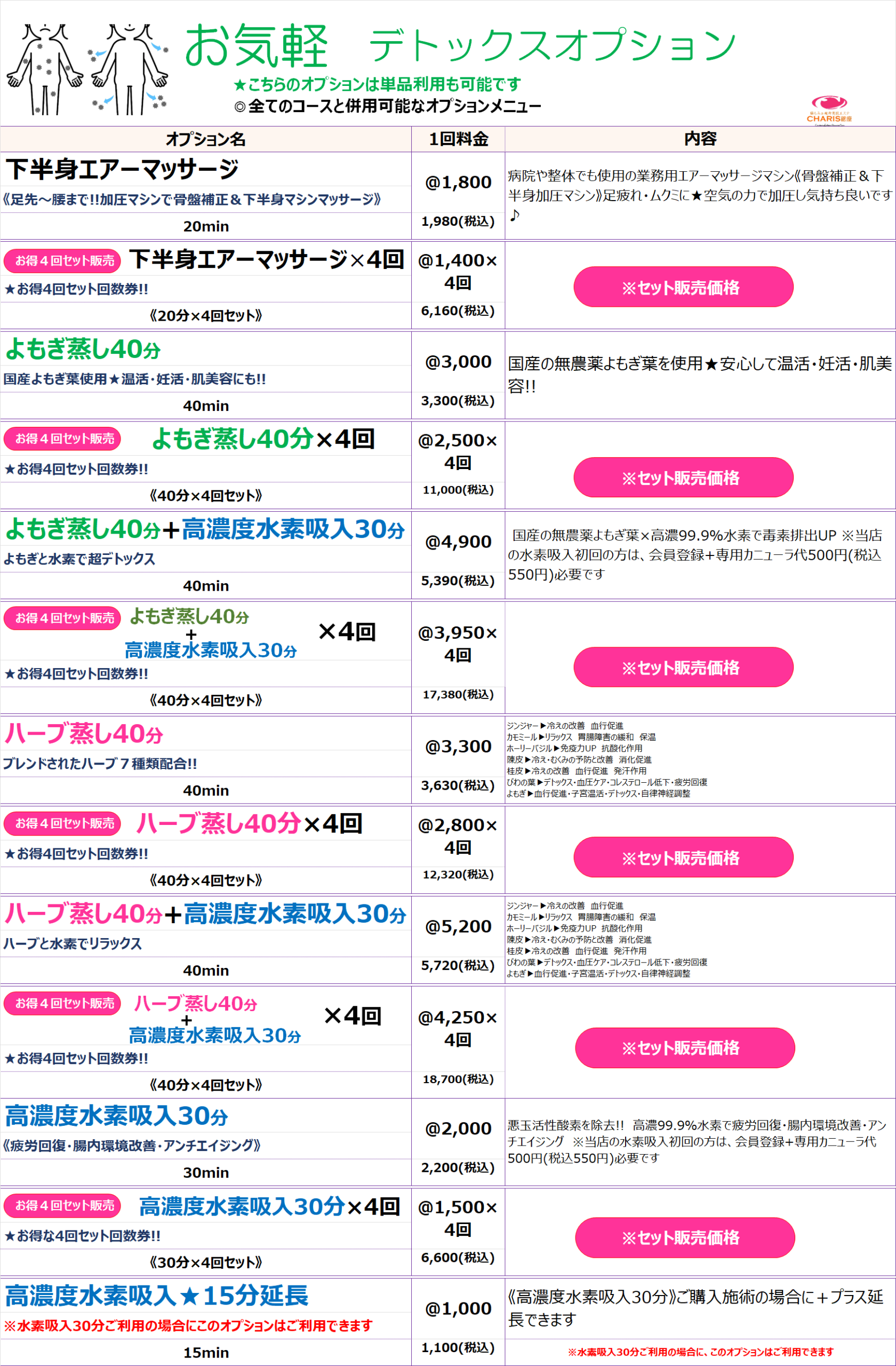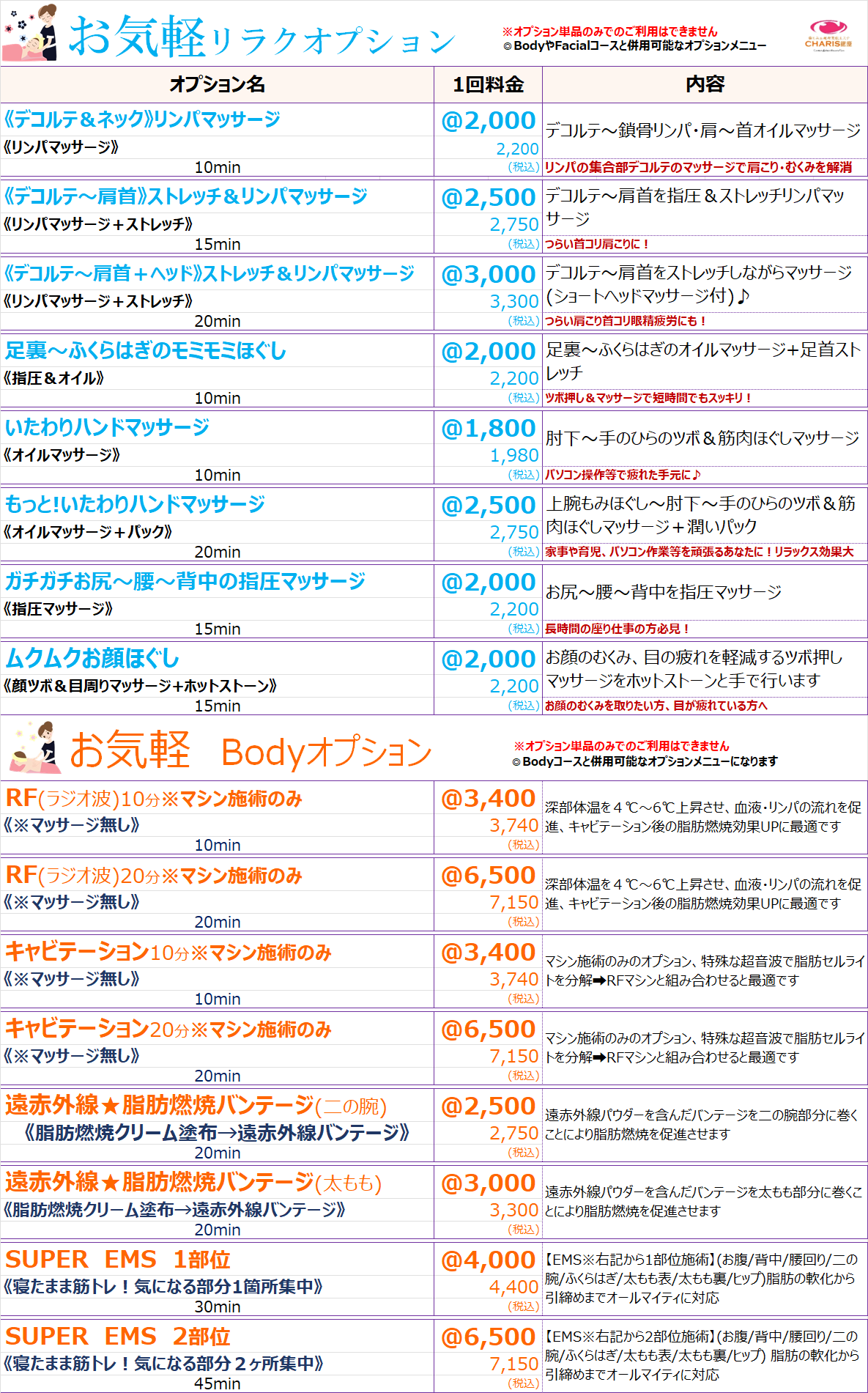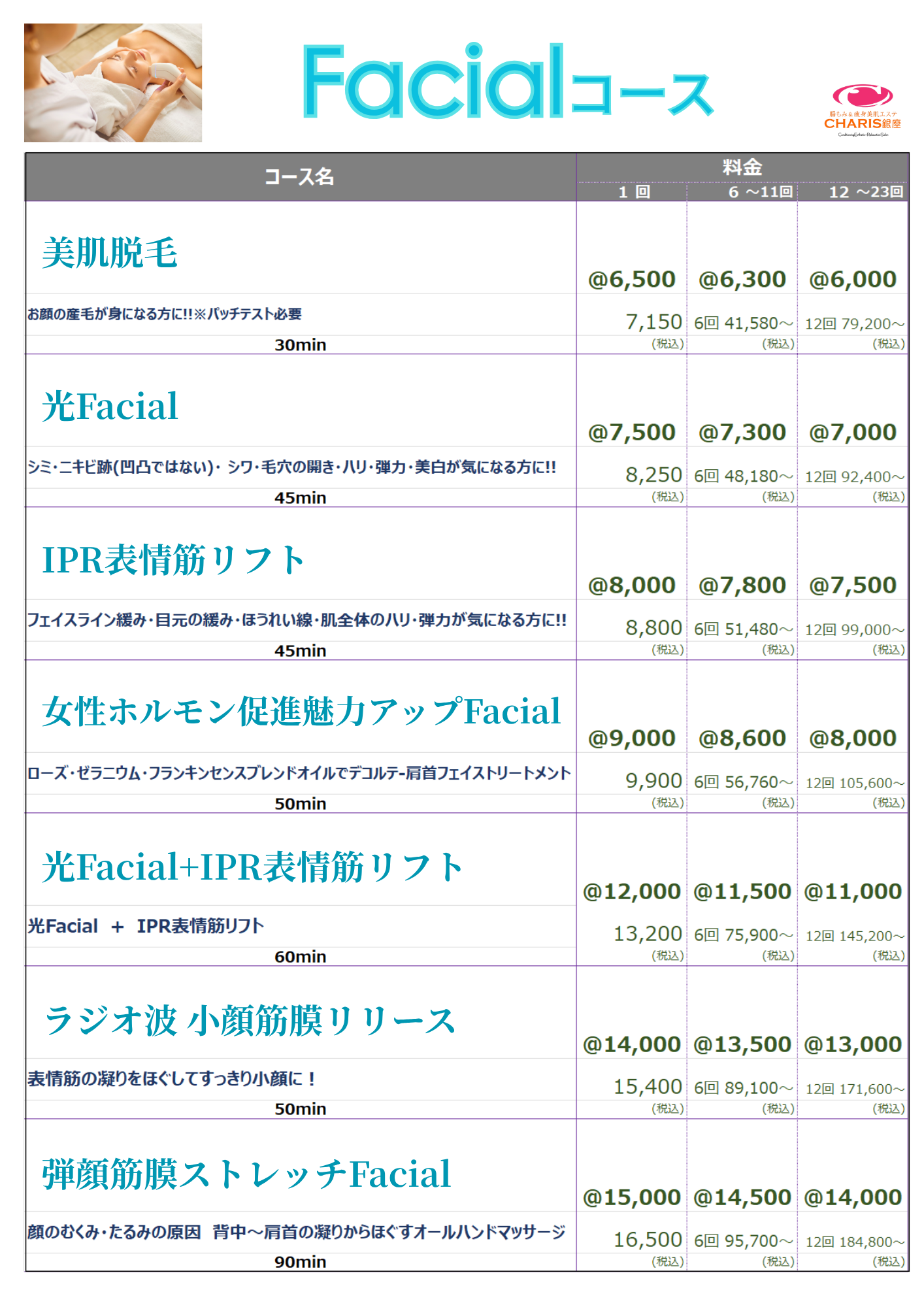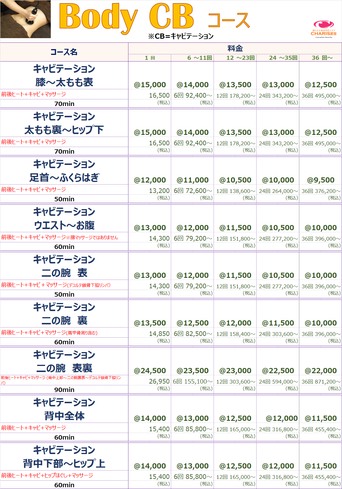 腸もみ&痩身美肌エステ CHARIS銀座 > コースメニュー %e3%82%b3%e3%83%bc%e3%82%b9%e3%83%a1%e3%83%8b%e3%83%a5%e3%83%bc コースメニュー CHARIS銀座コースメニュー 《CHARIS銀座コースメニュー》 ⚠来店ポイントやコースポイントで獲得した割引チケットは,各コース1回料金枠の価格にご利用出来ます。⚠SALE、キャンペーン等既に割引されているものにはご利用できません。 ⚠来店ポイントやコースポイントで獲得した割引チケットは,各コース1回料金枠の価格にご利用出来ます。⚠SALE、キャンペーン等既に割引されているものにはご利用できません。